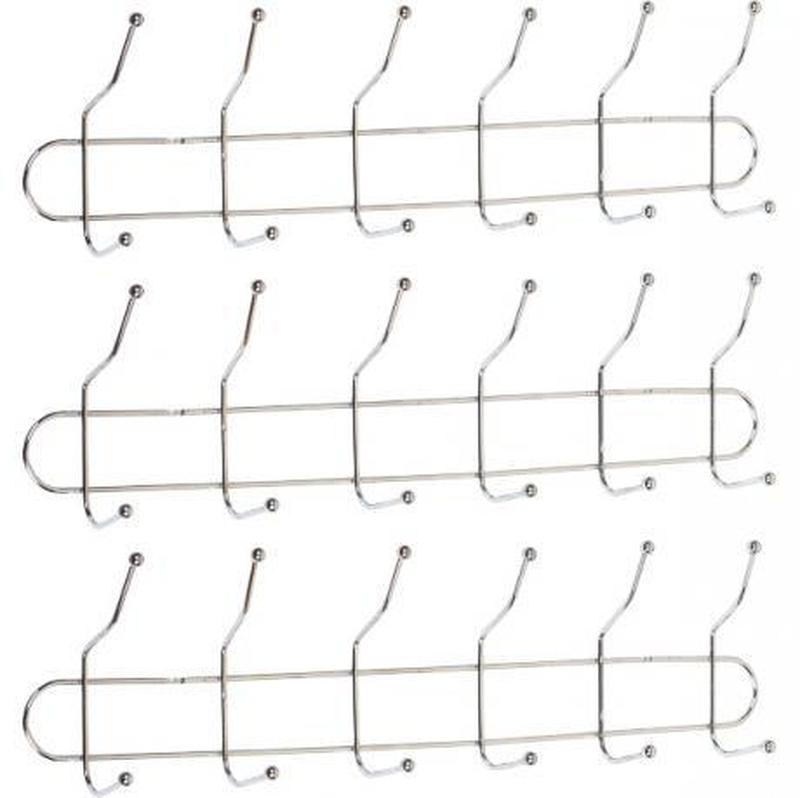 Вешалка настенная хромированная на 6 двойных крючках. Вешалка выполнена из металла, что обеспечивает высокую прочность и удобство. Тип крепления: шурупы. Материал: металл. Размер: 47х8х13 см