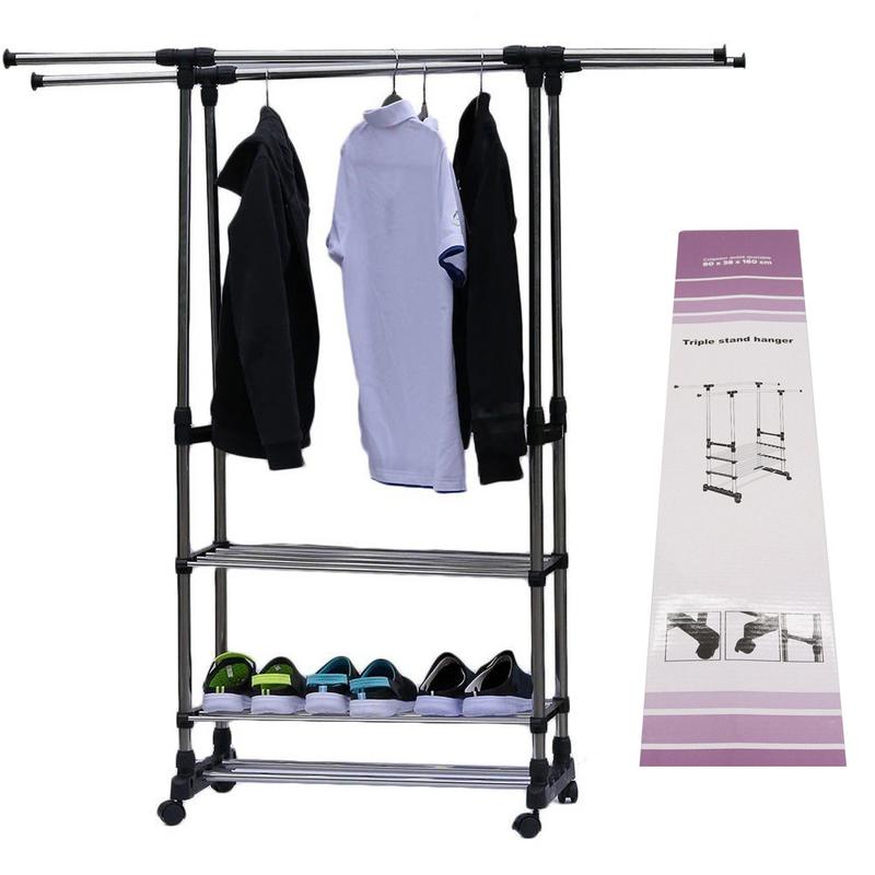 Стойка вешалка для одежды Colgador doble ajustable с полками для обуви Colgador doble ajustable облегчает не только организацию гардероба, но и со вкусом выглядит в каждой комнате благодаря современному дизайну Преимущества: - Стильное решение для любого интерьера. - Изготовлена из прочных материалов. - Экономия пространства в помещении. - Вешалка с полками для одежды и обуви - всё в одном. - Свобода перемещения в зависимости от потребностей. - Простая установка в несколько шагов. Описание: Размещение вещей в квартире, а особенно в квартире небольшого размера, дело непростое, есть всего несколько вариантов, при которых количество свободного места остается большим - это либо встроенный шкаф во всю стену, либо передвижной стойка для одежды. Представляем Вам удобный и выгодный способ размещения всех нужных вещей обуви. Телескопическая вешалка для одежды с полками для обуви Colgador doble ajustable облегчает не только организацию гардероба, но благодаря современному дизайну со вкусом выглядит в каждой комнате. Вешалка помогает поддерживать порядок. Характеристики: - Тип: Телескопическая полка; - Вес: 3,4 кг; - Материал изготовления: металл, пластик; - Цвет: металлик; - Размеры: 80 х 38 х 160 см; Комплектация: - Телескопическая полка-вешалка для одежды Colgador doble ajustable - Упаковка