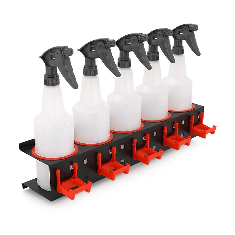 Настенный держатель для полировальных паст, распылителей и другой автохимии Описание: Прочный и удобный держатель с ячейками диаметром 85 мм — идеальное решение для организации автохимии в автосервисах, детейлинг-центрах, на СТО и в других мастерских. Обеспечивает порядок, быстрый доступ к средствам и экономию пространства. Кому подойдёт: • Детейлинг-студии • Автосервисы и СТО • Производственные зоны и мастерские Основные характеристики: • Материал: сталь — прочная и долговечная • 5 универсальных ячеек для ёмкостей объёмом 500–1500 мл • Резиновые защитные кольца внутри ячеек — предотвращают повреждение тары • 4 отверстия диаметром 28 мм в нижней части — для подвешивания триггерных распылителей, кистей, отвёрток и других мелких инструментов • Простой монтаж: в комплекте крепёжные болты для установки на стену или вертикальные поверхности Преимущества: • Экономия места и порядок в рабочей зоне • Универсальность: подходит для различных типов ёмкостей и инструментов • Защита тары: никаких царапин и случайных падений благодаря резиновым элементам Почему стоит купить: Этот держатель не просто организует пространство — он оптимизирует рабочие процессы и экономит ваше время. Прочность, функциональность и продуманный дизайн делают его идеальным решением для профессионалов.
