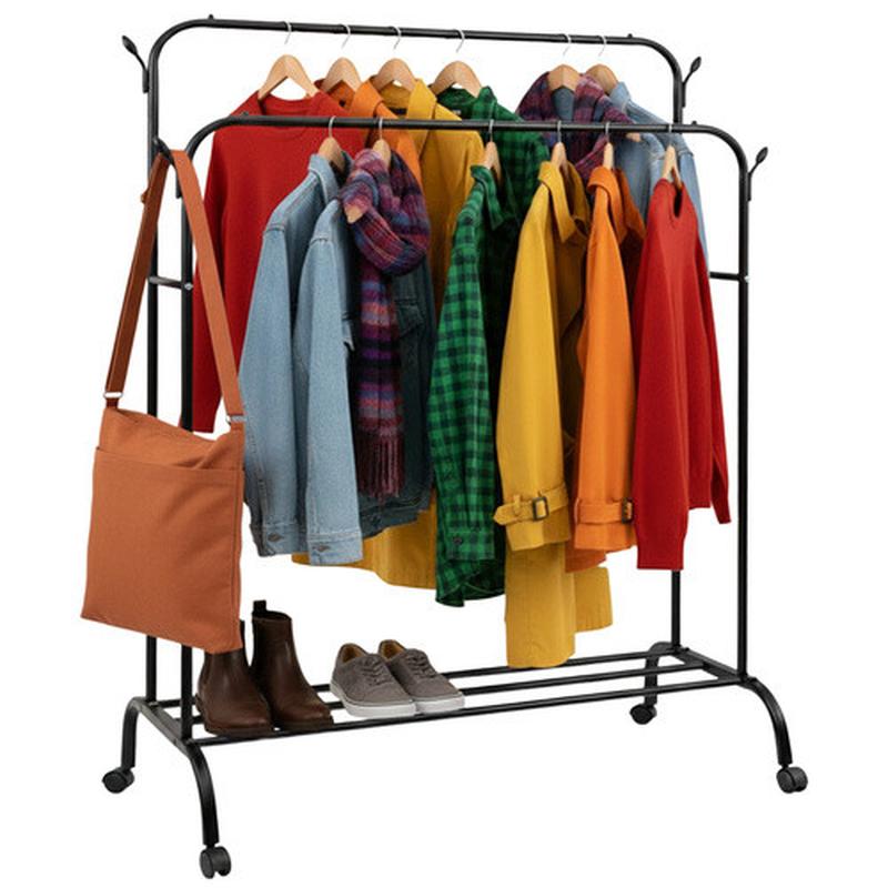 Вешалка - напольная стойка для одежды и с полкой для обуви двойная на колесах ruhhy 27084...