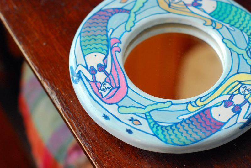 Зеркало ручной работы 13 см в диаметре. Материал : гипс Сзади петелька, чтобы крепить на стену