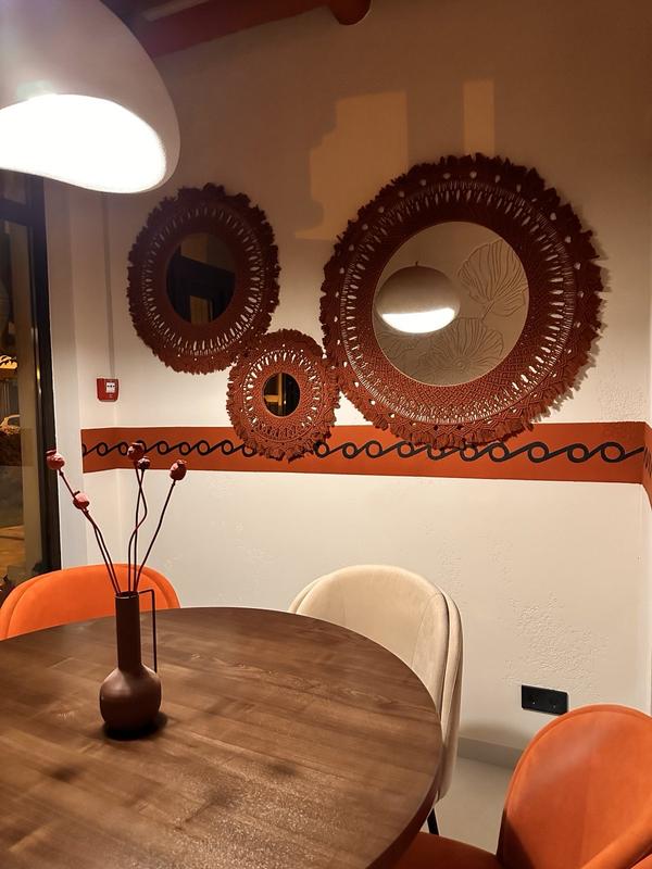 Рамка макраме для зеркала, цвет кирпичный, на фото размеры: большой - внутренний диаметр 60 см, внешний 110 см, средняя - внутренний диаметр 40 см, внешний 90 см, малая - 20/65 см. Цвет и размер может быть по вашему желанию. Цена указана в самую маленькую рамку.