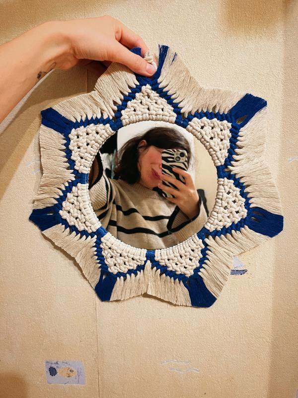 Дзеркало макраме, моя ручна робота. На замовлення для вас можу зробити будь-який розмір та підібрати колір. Дзеркало акрилове, не бʼється. Діаметр дзеркала на фото 20см