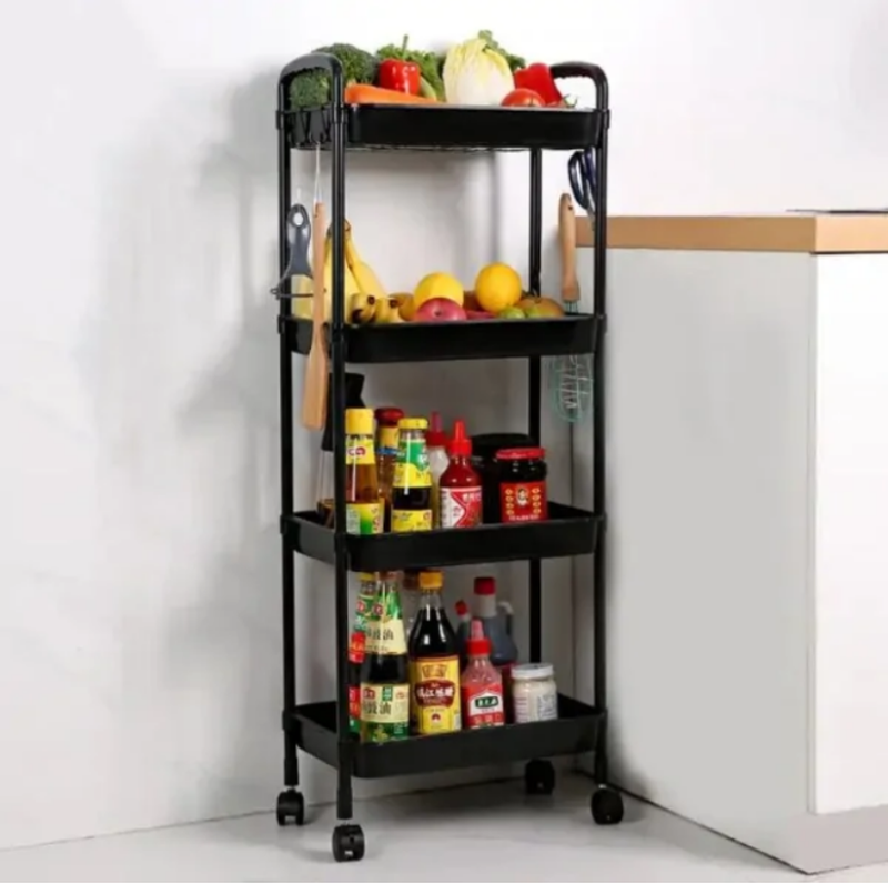 Напольная передвижная 4 ярусная полочка - Этажерка на колесах SKLM - 11 Размер : 104 х 40 х 26 см Материал : металл + пластик