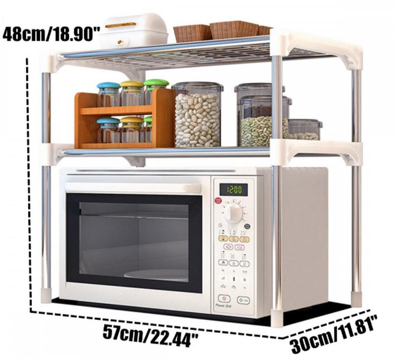 Настольный кухонный стеллаж под микроволновку с полками для посуды специй, этажерка для ми...