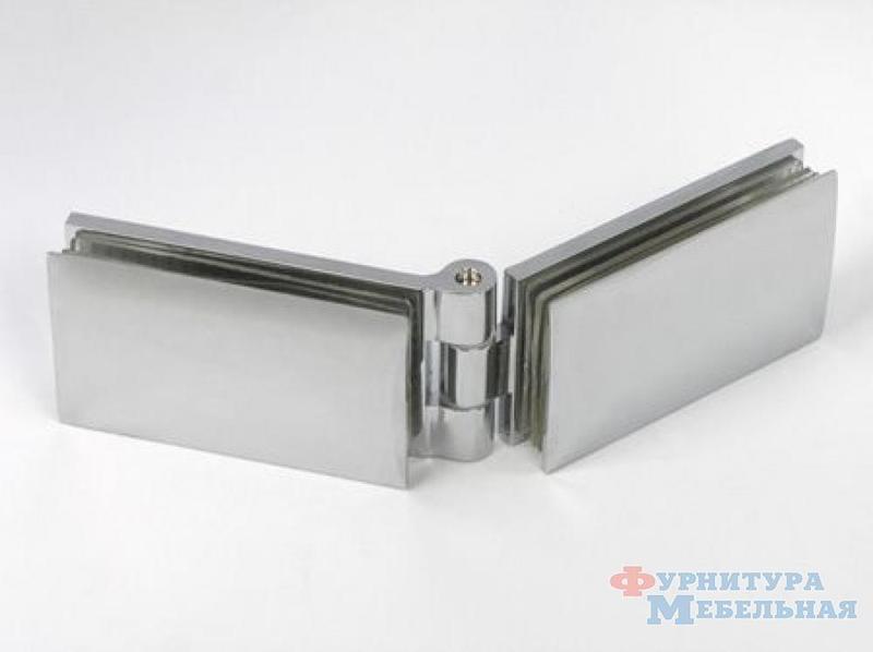 петля "стекло - стекло" - 180° свободный ход размер : ширина полки 52 мм, длина полки 89 мм под стекло 8 - 10 мм материал : высокопрочный алюминиево - магниевый сплав покрытие - хром