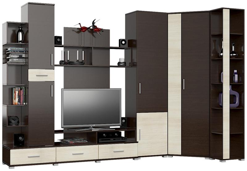 Вітальня бриз комплект 1, венге темний, дуб молочний мебель для дома
