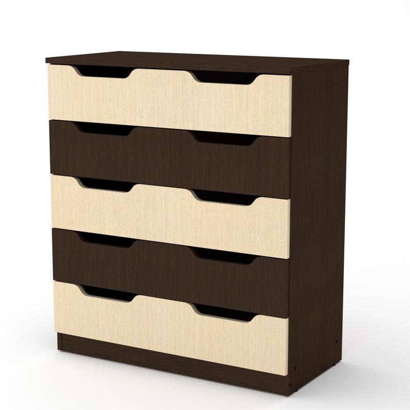 Комод-5М Компанит - удобная и практичная мебель для дома. Внутреннее наполнение комода приятно порадует своей вместительностью. Мебельное изделие выполнено из качественных материалов, полностью соответствующих европейским стандартам, что указывает на долговечность комода. Мебель выполняется в разных цветовых решениях, благодаря чему можно выбрать и купить комод, который гармонично впишется в интерьер. - Материал: ламинированное ДСП - Габаритные размеры (Ш*В*Г): 800*900*380 мм - Цвет ДСП: бук, венге, ольха, орех экко, яблоня, дуб сонома, нимфея альба