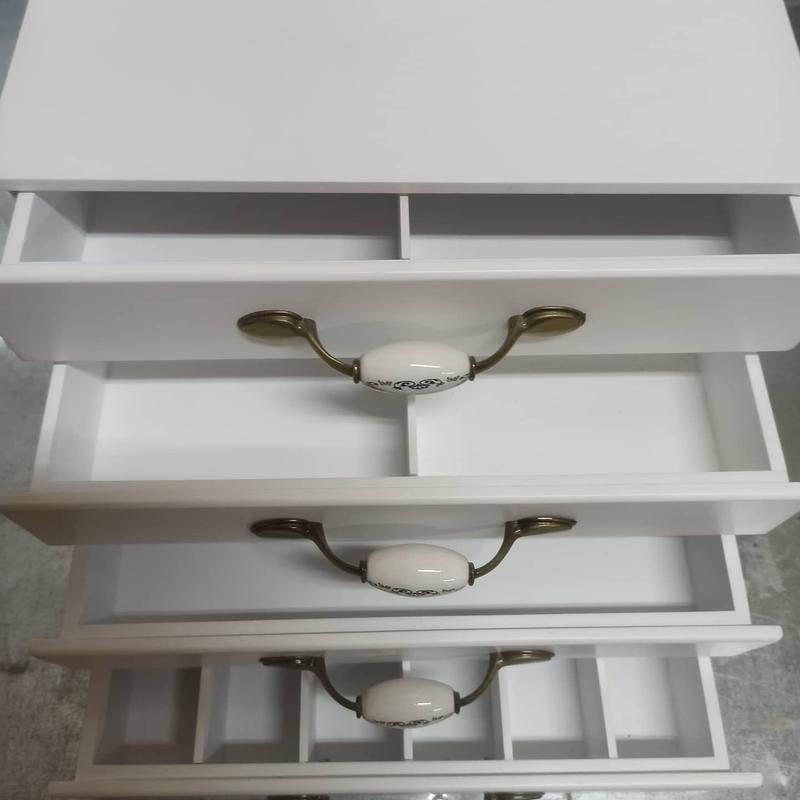 Милый комодик органайзер подойдет для хранения разных мелочей : Украшений, фурнитуры, бумаг, канцелярии, швейных принадлежностей, вышивальных и других мелочей. Комодик может быть изготовлен в размер вашей ниши, цвет подобран под цвет мебели. Ручки и наполнение ящичков, так же можно выбрать и оговорить. Стоимость изделия рассчитывается индивидуально, в зависимости от размера изделия. Также, можно нанести индивидуальную гравировку на изделие. По всем дополнительным вопросам всегда можно связаться с нами.
