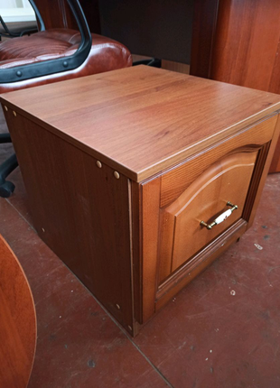 Виробник: Власне виробництво Тип меблів: Тумби Матеріал корпусу: ДСП Матеріал фасаду: Дерево Колір меблів: Горіх темний Тумба , корпус з ДСП горіх лісовий фасу висувного ящика з масиву дерева вільха. Розміри в см 50*50*47h