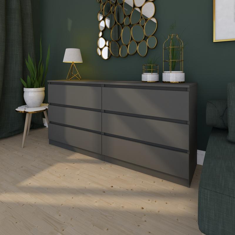 Комод vita двойной на 6 ящиков без ручек, серый графит