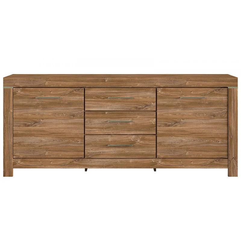 Комод в спальню ВМК (БРВ) Герман KOM2D3S/9/20 (телескопы) Дуб стерлинг Этот изысканный комод Герман KOM2D3S/9/20 от ВМК (БРВ) Украина придется по вкусу любителям классического стиля интерьера. Изготовлен из качественного древесно- стружечного плиты и МДФ, имеет нежный оттенок дуба стерлинг, благодаря чему легко впишется в любую цветовую гамму. Комод данной модели оснащен многофункциональной системой хранения вещей: здесь вы найдете три закрытых ящика на телескопических направляющих для мелких предметов и две просторные двери для вещей побольше. Размеры комода (200х45х85 см) позволят удобно разместить его даже в небольшой комнате, а его функционал и вместительность придутся по вкусу каждому. Товар произведен в Украине, что гарантирует его высокое качество и долговечность. Характеристики: Высота: 85 см; Глубина: 45 см; Длина: 200 см.