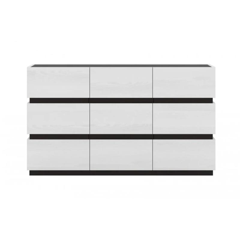 Комод в спальню Гербор Лайер KOM2D3S Венге магия/Ясень снежный Представляем вашему вниманию комод Лайер KOM2D3S, который выпущен известным украинским производителем Gerbor. Уникальность данной модели заключается в высоком качестве материалов и отличном дизайне. Цветовое исполнение комода - сочетание венге магии и ясеня снежного. Такая палитра придаст вашему интерьеру изысканный и элегантный вид. Лицевые детали комода выполнены из качественного ЛДСП. Характеристики: Длина: 135 см; Глубина: 44 см; Высота: 78 см. Такие размеры позволяют разместить внутри достаточное количество предметов. Лер KOM2D3S оснащен трема выдвижными ящиками и двумя дверцами, что делает его не только привлекательным, но и функциональным элементом мебели. Направляющие для ящиков представлены надежным немецким брендом HAFELE, что гарантирует плавное движение ящиков даже при максимальной нагрузке. Комод оформлен в современном, скандинавском и минималистическом стиле. Эти направления в дизайне позволяют вписать модель в любой интерьер, подчеркнув его индивидуальность и изысканность.