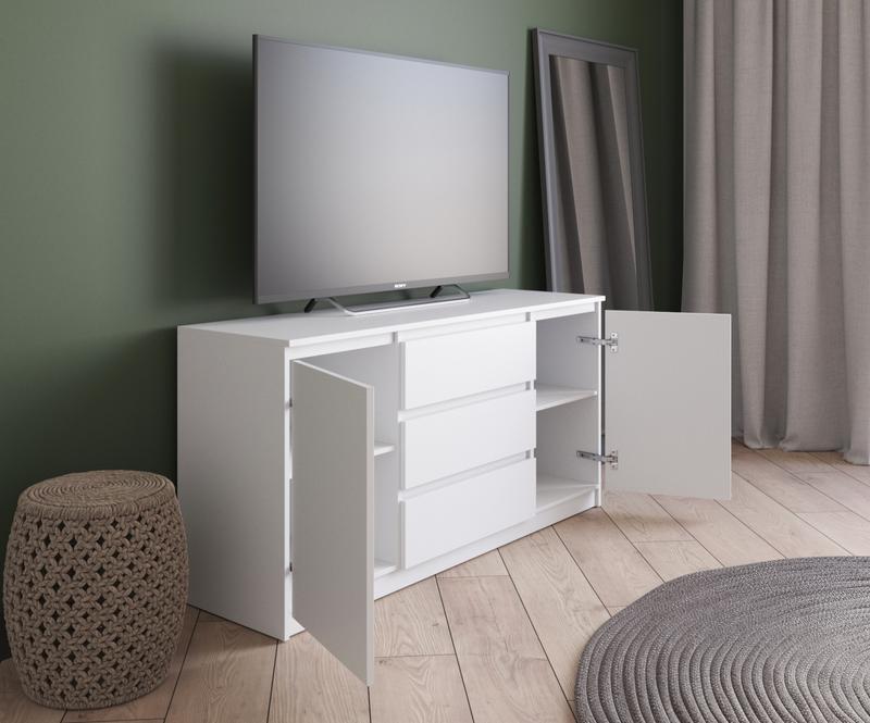 Тумба, комод для телевізора R - 15 Власне виробництво Матеріал: ламінова ДСП, товщина 16 мм Розміри: Ширина: 1402 мм Висота: 755 мм Глибина: 400 мм Кольори: Білий Дуб сонома Бетон Венго темний Антрацит Бетон + білий Дуб сонома + білий Венго темний + білий Антрацит + білий Доставляємо Новою Поштою по всій Україні у розібраному вигляді ( це зменшує ризик пошкоджень та значно знижує вартість доставки) В комплекті є вся необхідна фурнітура та покрокова інструкція по збірці, всі отвори просверлені.