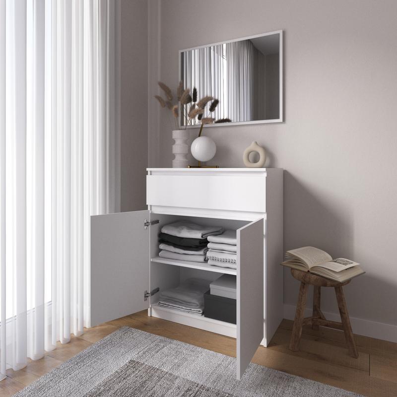 Комод на 1 ящик и 2 двери R - 23 Собственное производство Материал: ламиновая ДСП, толщина 16 мм Размеры: Высота: 980 мм Ширина: 802 мм Глубина: 400 мм Кольори: Белый Дуб сонома Бетон Венго темный Антрацит Дуб сонома + белый Бетон + белый Венго темный + белый Антрацит + белый Доставляется Новой Поштой по всей Украине в разобранном виде (это уменьшает риск повреждений и значительно снижает стоимость доставки) В комплекте есть вся необходимая фурнитура и пошаговая инструкция по сборке, все отверстия проскальзаны.