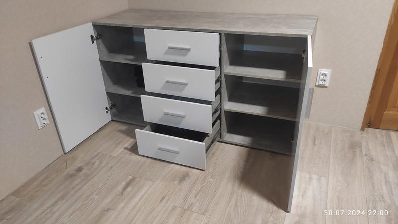 Комод Власне виробництво Перше - четверте фото це фото-відгук, щоб ви розуміли як виглядає вживу Матеріал: ламінова ДСП, товщина 16 мм Розмір: Ширина: 1500 мм Висота: 840 мм Глибина: 520 мм Кольори: Білий Дуб сонома Бетон Венге темний Антрацит Дуб сонома + білий Бетон + білий Венге темний + білий Антрацит + білий Доставляємо Новою Поштою по всій Україні у розібраному вигляді ( це зменшує ризик пошкоджень та значно знижує вартість доставки) В комплекті є вся необхідна фурнітура та покрокова інструкція по збірці, всі отвори просверлені.