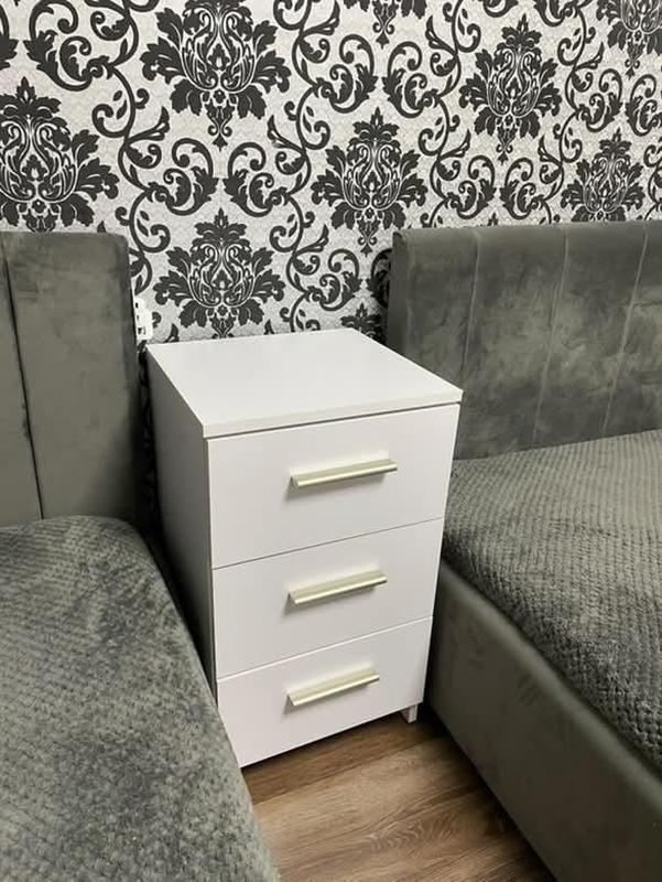 Комод Собственное производство Материал: ламиновая ДСП, толщина 16 мм Размер: Ширина: 376 мм Высота: 659 мм Глубина: 352 мм Кольори: Белый Дуб сонома Бетон Венге темный Доставляется Новой Поштой по всей Украине в разобранном виде (это уменьшает риск повреждений и значительно снижает стоимость доставки) В комплекте есть вся необходимая фурнитура и пошаговая инструкция по сборке, все отверстия проскальзаны.