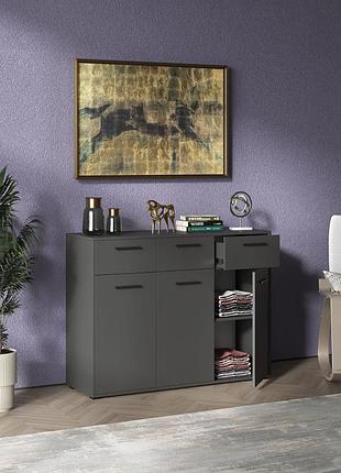 B - 30 Комод Собственное производство Материал: ламиновая ДСП, толщина 16 мм Размер: Ширина: 1200 мм Высота: 900 мм Глубина: 400 мм Кольори: Белый Дуб сонома Бетон Венге темный Антрацит Черный Доставляется Новой Поштой по всей Украине в разобранном виде (это уменьшает риск повреждений и значительно снижает стоимость доставки) В комплекте есть вся необходимая фурнитура и пошаговая инструкция по сборке, все отверстия проскальзаны.