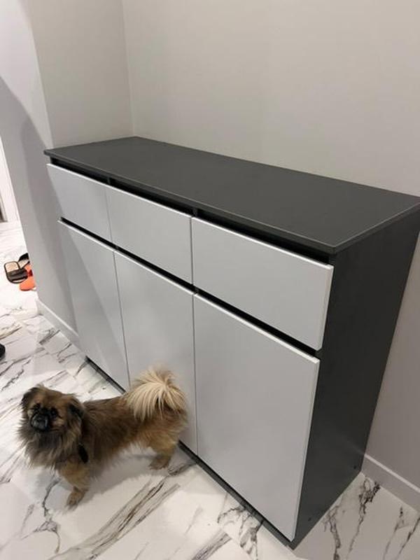 Комод с полками на 3 выдвижные ящики R - 33 Собственное производство Первое фото это фото-отгук чтобы вы знали как выглядит прием Материал: ламиновая ДСП, толщина 16 мм Размеры: Высота: 980 мм Ширина: 1202 мм Глубина: 400 мм Кольори: Белый Дуб сонома Бетон Венго темный Антрацит Дуб сонома + белый Бетон + белый Венго темный + белый Антрацит + белый Доставляется Новой Поштой по всей Украине в разобранном виде (это уменьшает риск повреждений и значительно снижает стоимость доставки) В комплекте есть вся необходимая фурнитура и пошаговая инструкция по сборке, все отверстия проскальзаны.
