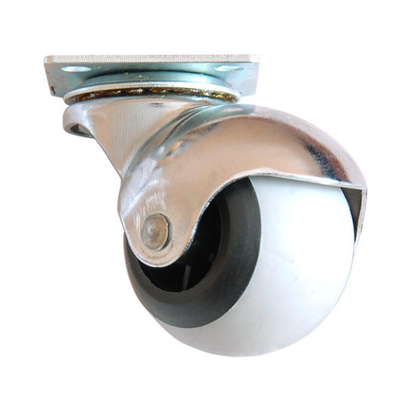 Мебельный ролик бывает диаметром 40 и 50мм, материал резиновый, форма шарообразная на металлической платформе. Ролик D40: высота ролика 50 мм., площадка 37х37 мм., отверстия в площадке 5 мм. Ролик D50: высота ролика 70 мм., площадка 37х37 мм., отверстия в площадке 5 мм