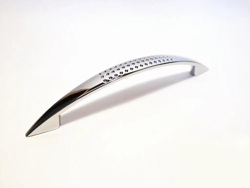 Ручка мебельная высокого качества. Цвет - хром; Материал - метал; Ручка декорирована 45 рельефными точками вдавленными внутрь. Общая длинна ручки - 165 мм, Расстояние между креплениями - 128 мм. Ширина ручки по центру -15 мм. Высота - 25 мм.