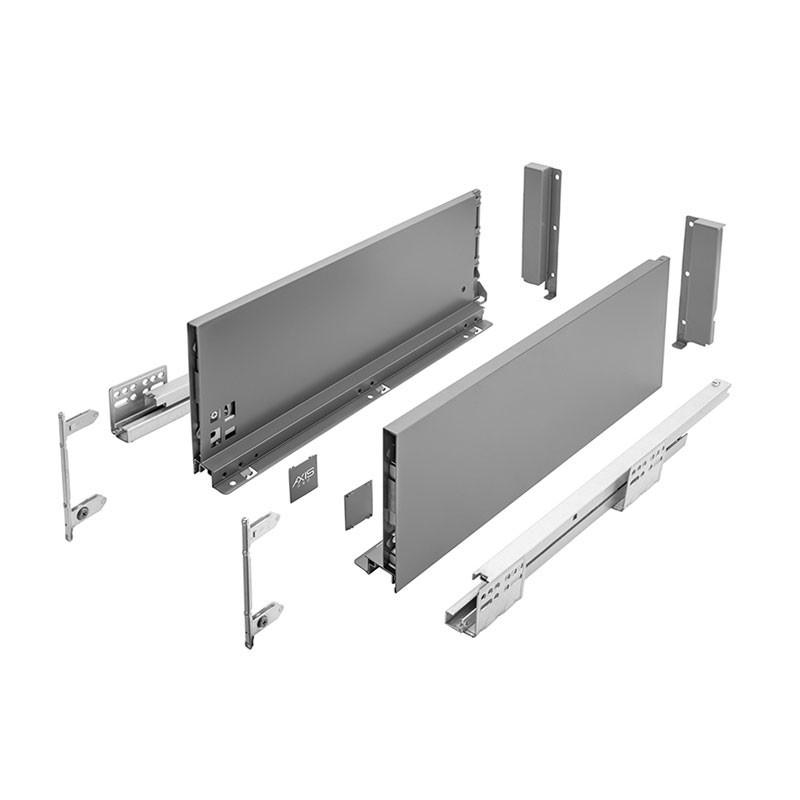 Выдвижной ящик AXIS PRO 500 Н116 антрацит AXIS PRO L-500 мм, средний H-116 мм, антрацит - система выдвижения нового поколения с повышенной эргономикой, для использования в кухонных гарнитурах и мебели для ванных комнат. КОМПЛЕКТАЦИЯ Шариковая направляющая полновыкатная, левая - 1 шт. Шариковая направляющая полновыкатная, правая - 1 шт. Боковая панель, левая - 1 шт. Боковая панель, правая - 1 шт. Крепление фасада для левой боковой панели - 1 шт. Крепление фасада для правой боковой панели - 1 шт. Крепление задней стенки для левой боковой панели - 1 шт. Крепление задней стенки для правой боковой панели - 1 шт. Заглушка для монтажных отверстий левой боковой панели - 1 шт. Заглушка для монтажных отверстий правой боковой панели - 1 шт. Саморезы для монтажа. ПРЕИМУЩЕСТВА Эстетичный дизайн за счет тонких боковых стенок (14 мм) и привлекательного декора. Максимальная вместимость ящика, достигнутая посредством нижнего монтажа направляющих и минимальной толщины боковых панелей. Регулировка фасада в вертикальной (+/- 2 мм) и горизонтальной (+/- 2 мм) плоскостях. Полное выдвижение, обеспечивающее удобный доступ к содержимому ящика. Мягкое и тихое задвижение, благодаря доводчику. ДОПОЛНЕНИЕ В случае необходимости аксессуары для AXIS PRO приобретаются отдельно.