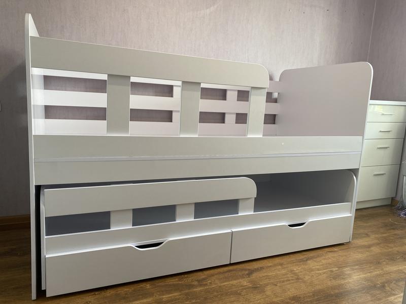 Кровать с дополнительным выдвижным спальным местом. Выполнено на заказ, продается в связи с переездом. Размер места под матрас: 190см х 90см Материал изготовления ЛДСП Есть небольшие нюансы, указаны на фото. Торг.