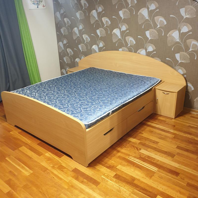 кровать + матрас. кровать делали по заказу, материал Kronospan. Заказанные для девочки 12 лет, ребенок спала около 3 месяцев. позже ребенок выбрал мебель, которая не помещается в комнате из-за размера кровати, поэтому заказывает кровят меньшего размера. матрас имеет размеры 160 (ширина) х 190 (длина), максимальный вес для матраса 150 кг. ширина матраса матрас был постоянно в наматраснике. кровать и матрас можем продать отдельно. кровать с тумбочками 12.000 грн. матрас 8000 грн.