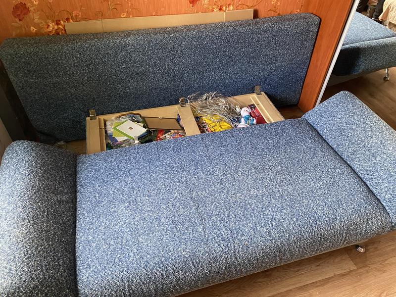 Диван раскладной с большой нишей,на металлических ножках,ткань антикоготь синего цвета!Самовывиз из Гостомеля