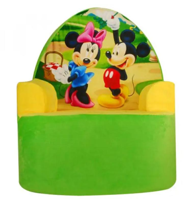 Яркое детское кресло с Минни и Микки желто-салатовое. Состояние идеальное. Покупали ребенку на день рождение, пользовались мало, так как подарили еще одно кресло.