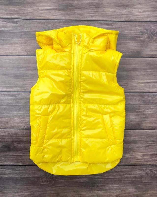 ЖИВОТКА желтого цвета с желтой молнией с светоотражающим элементом и отстегивающимся капюшоном. Комфорт для Вашего ребенка с первых лет жизни. Жилетка удлинена и это предохраняет спинку и поясницу Вашего ребенка от порывов ветра. Сверху есть защита от возможного зажима подбородка. Сзади на жилетке находится светоотражающий элемент. По бокам имеются карманы. Состав: - Верх - мягкая водоотталкивающая плащевая ткань "Moncler" высокого качества. - Внутри - подкладочная ткань. Утеплитель: силикон 150. Стирка желательно ручная и машинная (в режиме деликатная) при 30° С используя средства для стирки детских вещей. Страна производитель: Украина.