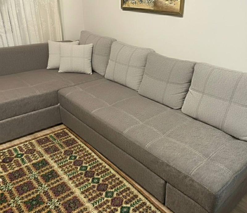 Продам диван – 18 500 грн (можливий торг) Диван у чудовому стані: проводилась професійна хімчистка, немає подряпин, коліщата робочі, механізм трансформації працює ідеально. Куплений в Епіцентрі близько 2 років тому. Зараз аналогічний диван в Епіцентрі коштує приблизно 30 000 грн, тому ціна дуже вигідна. У комплекті йдуть 4 великі подушки та 2 маленькі — усе в гарному стані. Основні характеристики: Вид: кутовий Країна-виробник: Україна Колекція: 2024 Наповнювач: пружинний блок синтепон пенополіуретан Розмір спального місця: 160×200 см Оббивка: рогожка Основа під матрац: суцільний щит Механізм трансформації: поворотний Якщо виникнуть додаткові запитання — пишіть, із радістю відповім.
