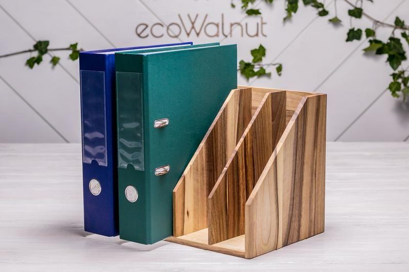 EF-6.2 Аксессуар «Подставка для папок и документов» 4 Вам надоело использовать дешевые пластиковые и крайне неприятные органайзеры и подставки для папок и бумаг? Именно поэтому мы разработали собственную качественную подставку для бумаг и папок формата А4 большого размера. Оригинальная подставка для папок и документов, выполненная из древесины грецкого ореха, будет крутейшим органайзером для бумаг на рабочем или домашнем столе у Вас или у человека, которому Вы ее подарите. А с гравировкой имени или логотипа компании, где трудится этот человек, Вы создадите нереальный фурор - такое изделие точно не оставит никого равнодушным. Вертикальный лоток для бумаги станет незаменимым атрибутом в процессе работы или учебы. Подставка станет очень полезным подарком для Ваших коллег, родных и друзей. Аксессуар может быть изготовлен в разных размерах, стандартно - от 3-х до 5-ти секций: 3 секции - 244x225x250 мм; 4 секции - 321x225x250 мм; 5 секции - 398x225x250 мм. Изделие продается в аккуратной картонной коробке, пригодной для вторичной переработки. По желанию клиента мы можем выгравировать Ваши инициалы, любимую цитату или логотип компании на нашем продукте или даже изменить его конструкцию по Вашему запросу. Кроме этого, мы обернем Ваш заказ в подарочную упаковку или вложим поздравительную открытку с Вашим сообщением, если Вы нас об этом попросите. Обратите внимание: цвет Вашего продукта может незначительно отличаться от изображения, поскольку каждое изделие имеет индивидуальные и уникальные характеристики и особенности древесины. Ежедневно отправляем заказы Укрпочтой (бесплатно от 2000 грн) или Новой Почтой (бесплатно от 4000 грн). Материал: высококачественная обработанная древесина грецкого ореха, пропитанная натуральным маслом. Сделано в Украине по всем стандартам eco-продукции. Дополнительные характеристики: Назначение : Для бумаг Материал : Дерево Персонализация : С гравировкой