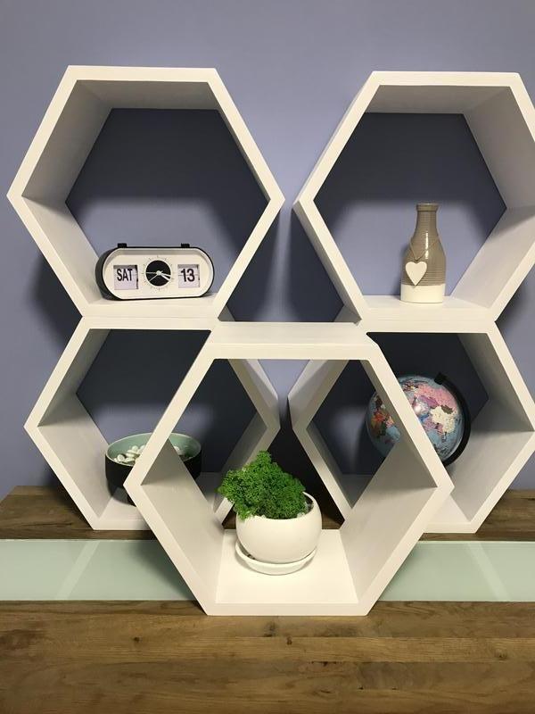 Полки соти. Матеріал сосна товщиною 18 мм, колір на вибір, кріплення скритого типу в комплекті. Розміри поличок по діагоналі 28/34/40 см та глибиною 10 см. Ціни вказані без вартості фарбування: 28см шириною та 10см глибиною - 200,0грн; 34см шириною та 10см глибиною - 250,0грн; 40см шириною та 10см глибиною - 270,0грн; з перемичкою + 30,0 грн до ціни. Вартість фарбування + 50 грн до ціни одного виробу. Для замовлення комплектів різних розмірів залиште повідомлення. Дополнительные характеристики: Назначение : Для игрушек Назначение : Для икон Назначение : Для книг Назначение : Для косметики Назначение : Для специй Назначение : Для фотографий Назначение : Для цветов Материал : Древесина Цвет (оттенок) мебели: Белый эмаль Тип мебели: книжная полка Тип: Настенная Форма: Сота / шестигранная Товар под заказ
