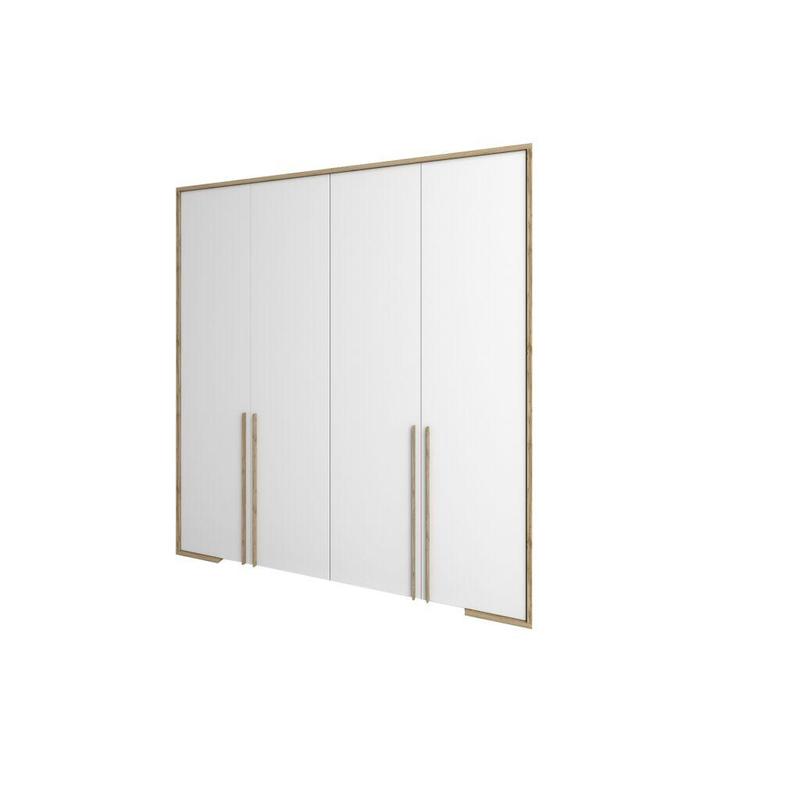 Шкаф 4д спальни Франческа. Внешний корпус выполнен из ДСП 22мм Дуб вотан, внутренний корпус выполнен в белосм цвете ДСП 16мм, на фасадах белого цвета установлены оригинальные ручки под цвет натурального дерева из качественного пластика очень приятного на ощупь.