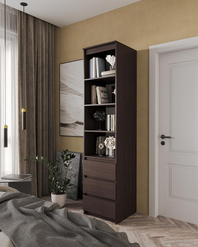 Открытый пенал для дома с 4-мя полками и 3-мя выдвижными ящиками, шкаф для вещей Собственное производство 📌 Материал: ламиновая ДСП, толщина 16 мм 📜 Размер: 🔸Ширина: 500 мм 🔸 Высота: 2117 мм 🔸 Глубина: 498 мм Кольори: ▫️Белый ▫️Дуб сонома ▫️Бетон ▫️Венге темный ▫️Антрацит ▫️Аруша ▫️Капучино Доставляется Новой Поштой по всей Украине в разобранном виде (это уменьшает риск повреждений и значительно снижает стоимость доставки) В комплекте есть вся необходимая фурнитура и пошаговая инструкция по сборке, все отверстия проскальзаны. #стелаж #поля #комод #стел #прикроватусамба #тумба #полядляг #комп компьютерныйстил #тумбабзора #настеннополка #полка для обувье #туалетинасточка #шафа #пенал #стесть #столик #передышка #дача #тумбадлятв #полка #комодобеветров