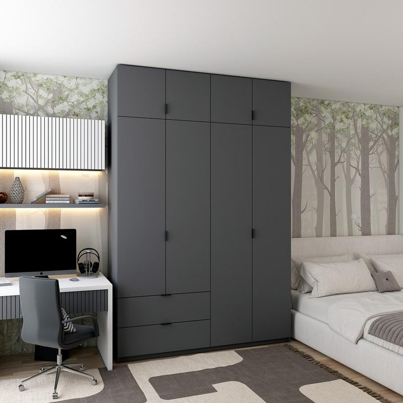 Шкаф для одежды высокий лукас графит 160х50х240 распашной гардероб для спальни с антресоль...