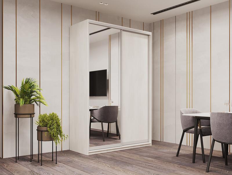 Шкаф-купе двухдверный doros сити лайт 150х45х225 см белое дерево/1 зеркало (drs-011062)