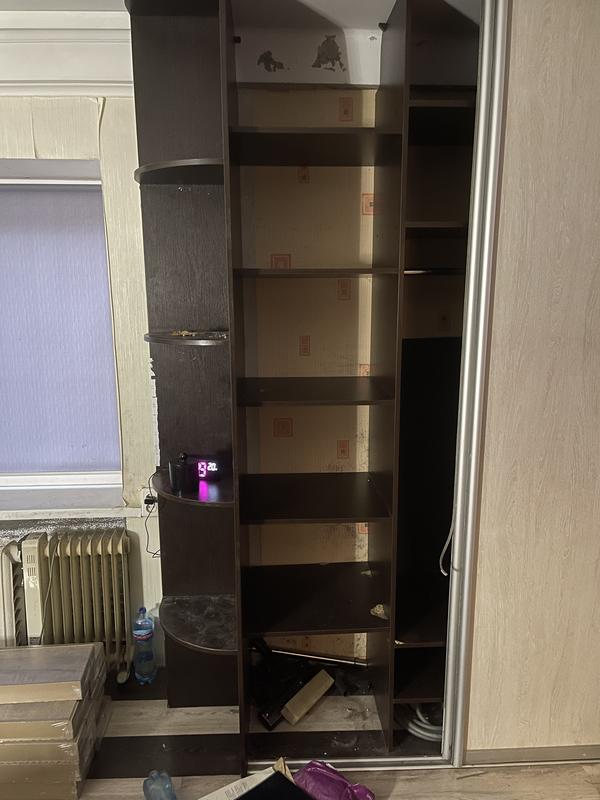 шкаф купе в нормальном состоянии, высота 250 /180 /30 см угловые полочки, задняя стенка отсутствует. Самовозиватель