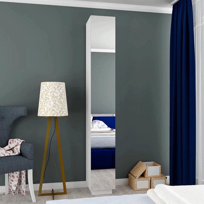 Шкаф распашной зеркальный HOLD №01. Шкафы в спальню и прихожую. Шкаф для одежды платяной Можно уточнить наличие товара, сроки отправки, ассортимент написав нам в Вайбер Все товары данной серии можно посмотреть тут: Другие подобные компьютерные и письменные столы: Розпашні шафи HOLD с дзеркалом Характеристики: Ширина: 300 мм (30 см), Глубина: 380 мм (38 см), Высота: 2200 мм (220 см) Материалы - ламинированная ДСП «Swiss Krono» 16 мм, имеет высокую плотность, разрешено использовать в производстве детской мебели, торгового оборудования и др., экологическая безопасность класс Е1. Кромка - противоударная, ПВХ, толщиной 2 мм. Фурнитура - "DC", "Linken", опоры шкафа 70 мм регулируемые. Возможна врезка замков в ящики * * * Цвет изделия: стоимость указана за изделие в цвете корпуса Нимфея Альба (снежно белый) и в любом цвете фасадов из палитры "Палитра цветов с фасадами HOLD Стандарт". Также возможен заказ изделия только в белом цвете. Оттенок материалов изделия зависит от калибровки цветопередачи вашего устройства (монитора, планшета, смартфона), в действительности может иметь незначительные отличия. При оформлении заказа Вы можете обсудить с менеджером все детали относительно цвета изделия и его комлектации * * * Доставка - изделие поставляется в разобранном упакованном виде. Подробнее о стоимости, условиях, способах оплаты доставки, заноса и сборки изделия можно узнать из раздела нашего сайта * * * Гарантия 1 год - с условиями гарантии можно ознакомиться в разделе сайта * * * Купить распашной шкаф в Киеве и по всей Украине, можно прямо сейчас, сделав заказ в нашем интернет-магазине.