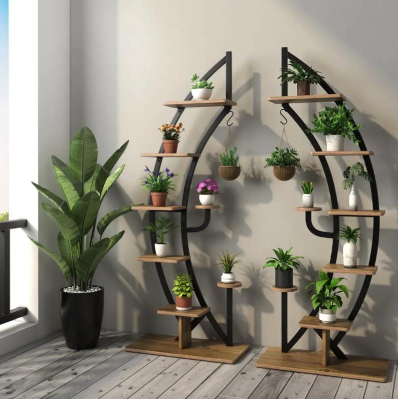 Стеллаж для цветов Costway Ruta комплект 2 штуки в форме полумесяца коричневый Иногда форма говорит больше, чем слова. А когда эта форма - утонченные полумесяцы, плавно обволакивающие зелень в вазонах, тогда перед нами не просто стеллаж, а настоящее произведение искусства. Комплект из двух стеллажей для цветов известного бренда Costway в форме полумесяца - это воплощение гармонии, баланса и природной эстетики. Изогнутые линии, как с ночного горизонта, создают эффект мягкого движения, добавляя динамики интерьера. Эти стойки для растений в горшках не только обеспечивают пространство для размещения любимых зеленых питомцев, но и создают завершенную композицию, которую можно изменять по настроению или времени года. Изготовленные из металла и древесины, эти металлические цветочные подставки гарантируют стабильность, долговечность и визуальное изящество. Идеальны для тех, кто стремится соединить природу, стиль и индивидуальность в собственном доме. Прочная металлическая конструкция Настоящее изящество требует надежной опоры. Металлическая подставка для цветов Costway Ruta не только очаровывает формой, но и поражает крепостью. Изготовлена из стали с износостойким порошковым покрытием, она устойчива к коррозии, царапинам и воздействию влаги. Такая конструкция способна выдерживать до 22,6кг на каждой полке, гарантируя надежную поддержку даже для тяжелых вазонов. Несмотря на легкость внешнего вида, эти стойки для растений в горшках имеют усиленное основание, исключающее шаткость или деформацию со временем. Это красота, которая не боится испытаний будней. Многоярусная конструкция Чем больше уровней - тем больше возможностей для творчества. Подставка для цветов в форме полумесяца предлагает 6 ярусов каждой стойки, что создает идеальные условия для каскадного размещения вазонов. Такой дизайн позволяет легко комбинировать разновидности цветов по цвету, размеру или фактуре, превращая обычную коллекцию растений в изящную вертикальную инсталляцию. Каждый уровень имеет отдельную функцию - от размещения суккулентов до выставления цветущих композиций или декоративных кашпо. Многоуровневая структура поможет вам сделать зелень центральным элементом интерьера, не перегружая пространство. Хороший изогнутый дизайн Вдохновленный естественными формами и плавностью линий, изогнутый дизайн в форме полумесяца придает этому комплекту стеллажей неповторимую грацию. Легкая асимметрия добавляет динамики, а округлые контуры создают впечатление мягкого потока - именно то, чего так не хватает в строгих, прямолинейных интерьерах. Такой декоративный стеллаж для цветов выглядит как артобъект, сочетающий в себе эстетику и функциональность. Он обращает на себя внимание, создает атмосферу уюта и баланса, подчеркивает красоту зелени и задает эмоциональный акцент в комнате. Это не просто место для растений - это часть интерьерной поэзии. Стабильность и безопасность - каждая деталь продумана Ваши любимые вазоны заслуживают надежной опоры - и стеллаж для цветов Costway Ruta гарантирует именно это. Оснащенный антискользкими ножками, он сохраняет устойчивость даже на неровном полу, защищая поверхность от царапин. Каждая полка крепко закреплена, а форма полумесяца способствует равномерному распределению веса. Этот комплект также может быть дополнительно зафикси