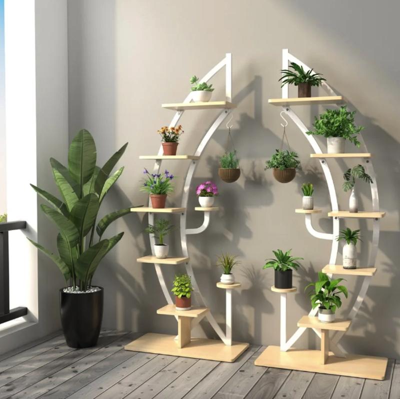 Стеллаж для цветов Costway Ruta комплект 2 штуки в форме полумесяца коричневый Иногда форма говорит больше, чем слова. А когда эта форма - утонченные полумесяцы, плавно обволакивающие зелень в вазонах, тогда перед нами не просто стеллаж, а настоящее произведение искусства. Комплект из двух стеллажей для цветов известного бренда Costway в форме полумесяца - это воплощение гармонии, баланса и природной эстетики. Изогнутые линии, как с ночного горизонта, создают эффект мягкого движения, добавляя динамики интерьера. Эти стойки для растений в горшках не только обеспечивают пространство для размещения любимых зеленых питомцев, но и создают завершенную композицию, которую можно изменять по настроению или времени года. Изготовленные из металла и древесины, эти металлические цветочные подставки гарантируют стабильность, долговечность и визуальное изящество. Идеальны для тех, кто стремится соединить природу, стиль и индивидуальность в собственном доме. Прочная металлическая конструкция Настоящее изящество требует надежной опоры. Металлическая подставка для цветов Costway Ruta не только очаровывает формой, но и поражает крепостью. Изготовлена из стали с износостойким порошковым покрытием, она устойчива к коррозии, царапинам и воздействию влаги. Такая конструкция способна выдерживать до 22,6кг на каждой полке, гарантируя надежную поддержку даже для тяжелых вазонов. Несмотря на легкость внешнего вида, эти стойки для растений в горшках имеют усиленное основание, исключающее шаткость или деформацию со временем. Это красота, которая не боится испытаний будней. Многоярусная конструкция Чем больше уровней - тем больше возможностей для творчества. Подставка для цветов в форме полумесяца предлагает 6 ярусов каждой стойки, что создает идеальные условия для каскадного размещения вазонов. Такой дизайн позволяет легко комбинировать разновидности цветов по цвету, размеру или фактуре, превращая обычную коллекцию растений в изящную вертикальную инсталляцию. Каждый уровень имеет отдельную функцию - от размещения суккулентов до выставления цветущих композиций или декоративных кашпо. Многоуровневая структура поможет вам сделать зелень центральным элементом интерьера, не перегружая пространство. Хороший изогнутый дизайн Вдохновленный естественными формами и плавностью линий, изогнутый дизайн в форме полумесяца придает этому комплекту стеллажей неповторимую грацию. Легкая асимметрия добавляет динамики, а округлые контуры создают впечатление мягкого потока - именно то, чего так не хватает в строгих, прямолинейных интерьерах. Такой декоративный стеллаж для цветов выглядит как артобъект, сочетающий в себе эстетику и функциональность. Он обращает на себя внимание, создает атмосферу уюта и баланса, подчеркивает красоту зелени и задает эмоциональный акцент в комнате. Это не просто место для растений - это часть интерьерной поэзии. Стабильность и безопасность - каждая деталь продумана Ваши любимые вазоны заслуживают надежной опоры - и стеллаж для цветов Costway Ruta гарантирует именно это. Оснащенный антискользкими ножками, он сохраняет устойчивость даже на неровном полу, защищая поверхность от царапин. Каждая полка крепко закреплена, а форма полумесяца способствует равномерному распределению веса. Этот комплект также может быть дополнительно зафикси