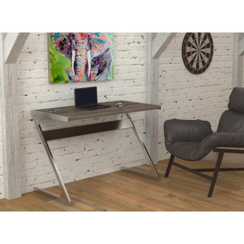 Стіл Z-110 Loft design Представляємо вашій увазі новинку - письмовий стіл Z -110! Якщо Ви шукаєте невеликий і акуратний стіл для будинку, або кабінету - це ідеальний вибір для Вас! Тому що виріб поєднує в собі простоту і функціональність. Стіл дуже компактний, що забезпечить Вам комфотрне робоче місце.Оригінальна форма металевих деталей надає столу стійкості,а його зовнішний вигляд зробить інтер'єр свіжим та сучасним. Письмовий стіл Z-110 має оригінальну конструкцію корпусу , яка ломає наші стереотипи о столах. Замість звичних нам чотирьох опор, тут дві Z - подібні ніжки виконані з міцьного металу. Металевий каркас столу забарвлений в сріблястий колір під хром. Внизу опор є маленькі висувні ніжки, призначені для компенсації нерівностей підлоги. Металевий каркас виконаний з міцьного металу товщиною листа 1,4мм. Робоча поверхня виконана з здвоєного ЛДСП товщиною 32мм. По краях клеїться стійка до пошкоджень кромка товщиною 2 мм. ЛДСП представлено в чотирьох кольорах: - Венге Корсика; - Горіх Модена; - Дуб Палена; - Рустер. Письмовий стіл Z-110 від компанії Loft design має такі розміри: - Ширина -110см.; - Глибина 58 див.; - Висота 75 см. Завдяки вдалій конструкції , цей стіл буде неймовірно зручним. Його також можна використовувати як офісний стіл або як стіл для письма.
