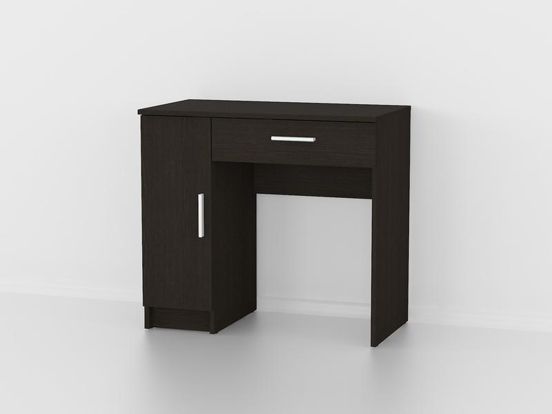 Cтол туалетный с тумбой и одним ящиком 0061. Компактный столик для макияжа с тумбой на 1 дверку (за дверкой полка) и ящиком. Также можно использовать, как компьютерный стол. Материал: ДСП Ламинированое 16мм Направляющие: Телескопические. Размеры (Ш/В/Г) : Ш 802 / В 736 / Г 440 мм Отправляем в разобранном виде Новой Почтой по всей Украине В комплекте вся необходимая фурнитура и пошаговая схема сборки Вес: 28 кг