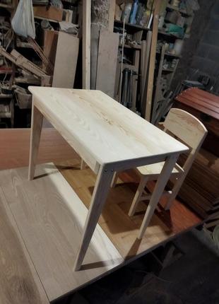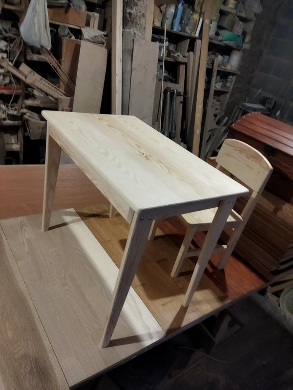 Продам новый детский столик из натурального дерева (сосна). Отшлифован и покрыт хорошим матовым лаком на водной основе. Все детали закруглены. Размеры столешницы 70х43 см, высота 51 см. Столик разборной. Рассчитан на детей от полутора лет. Можно купить со стульчиком (+450). Рисунок текстуры столешницы будет отличаться от образца предоставленного не фото!