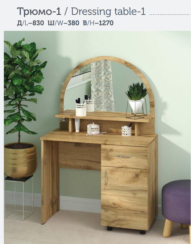 Каждая женщина мечтает о своем уголке в котором можно удобно разместить свои женские мелочи. Эту мечту можно осуществить с таким замечательным туалетным столиком который сочетает в себе компактность в размере и удобность в хранение вещей. В нашем интернет магазине вы можете подобрать трюмо на ваш вкус, а благодаря многообразной палитре цветов еще и красиво вписать в ваш интерьер. Характеристики: - Высота: 133 см; - Ширина: 83 см; - Глубина: 38 см; - Материал: ДСП; - Направляющие: роликовые; - Кромка: ПВХ; - Вес: 30 кг;