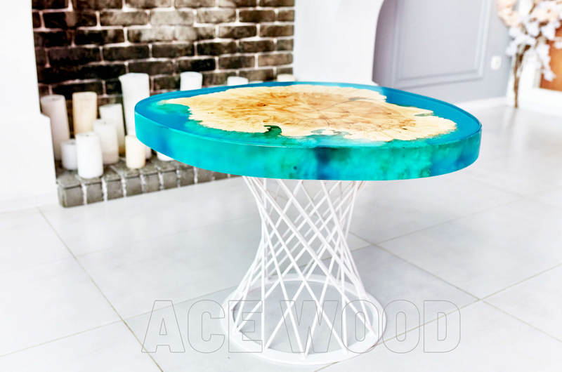 Тип столу: Журнальні Форма: Овальні Колір меблів: Бірюзовий Кілька примірників у наявності Журнальний столик з дерева і епоксидної смоли від компанії "Ace Wood". Порода дерева: В'яз Заливка: Прозора смола Ніжки: Метал Товщина стільниці: 80 мм Розміри: 850x750 мм Ціна: $1040 / 28 400 грн. Каталог виробів та більше інформації можна подивитися на нашому сайті: ****************