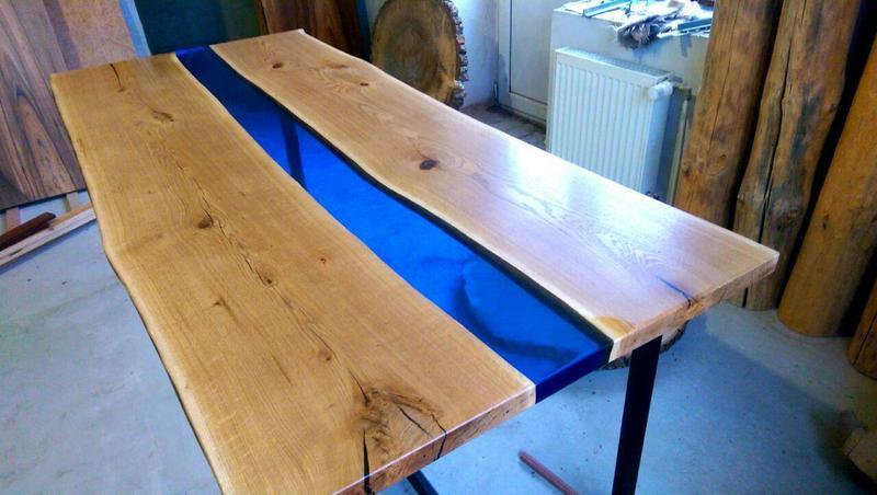 Стіл обідній зі слеба дуба з епоксидною смолою