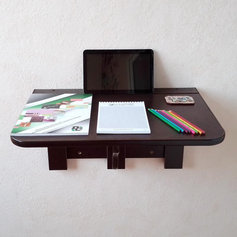Универсальный навесной столик с откидной крышей крепиться на стену. Цвет: Венге Площадь крыши в разложенном виде 60 х 40 см. Ламинированное ДСП. Крыша столика окантована противоударным профилем. Крепления в комплекте. Доставка по Украине новой почтой. Оплата на карту или при получении (наложенный платеж). В продаже имеются и светлые столики. Смотрите все наши изделия. Дополнительные характеристики: Столешница: ДСП