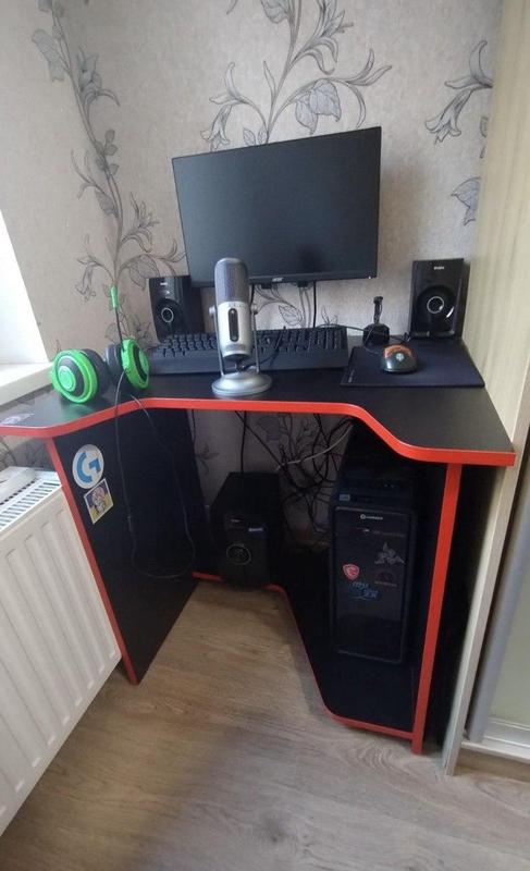 Комп'ютерний стіл XDesk-03 Ціна: 2800 грн Комп'ютерний стіл XDesk-03 - ергономічна модель у сучасному дизайні, яка ідеально підійде для тривалого перебування за монітором під час ігрової сесії або робочого дня. Анатомічний виріз на стільниці забезпечує максимально комфортну посадку та зменшує навантаження на хребет. Завдяки компактним габаритам модель дасть змогу заощадити корисну площу кімнати. Характеристики: Матеріал: ЛДСП 16 мм. Краї оброблені крайкою ПВХ 0,4 і 1 мм. Максимальне навантаження на стільницю: 20 кг. Максимальне навантаження на полицю під системний блок: 12 кг. Орієнтація складання: тільки так, як представлено на зображенні. Висота х Ширина х Глибина 740 х 900 х 670 мм
